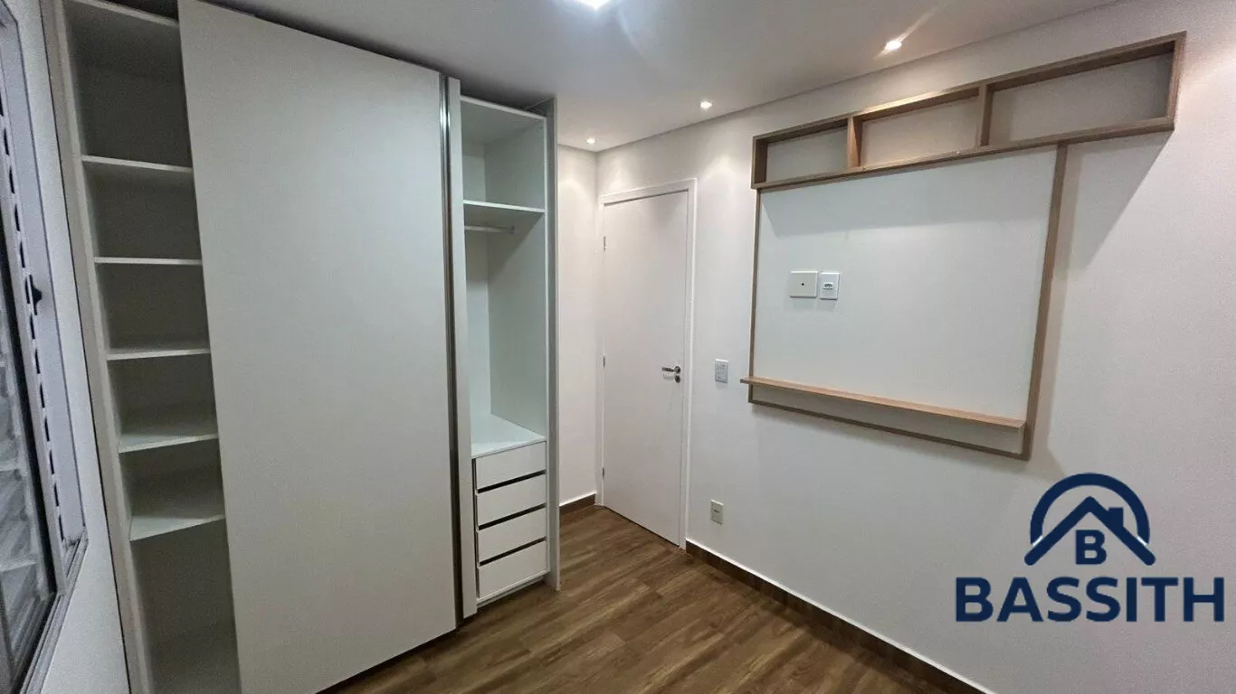 🏡 Conta com 2 dormitórios equipados com armários planejados, luminárias e painel de TV.
