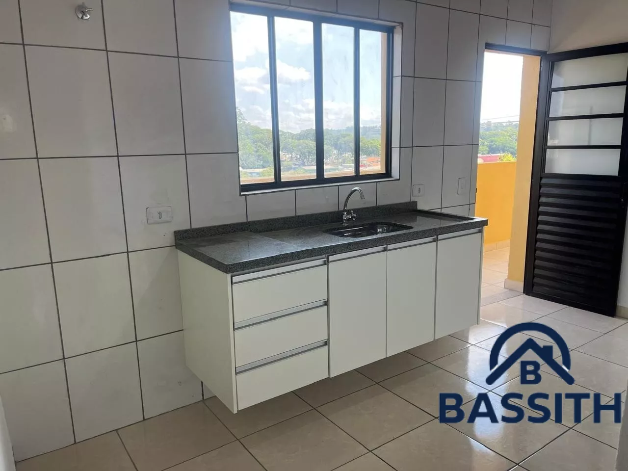 KITNET nova para locação, composta por 2 dormitórios, cozinha com gabinete e armário suspenso, banheiro com gabinete, chuveiro e box, além de área de serviço.