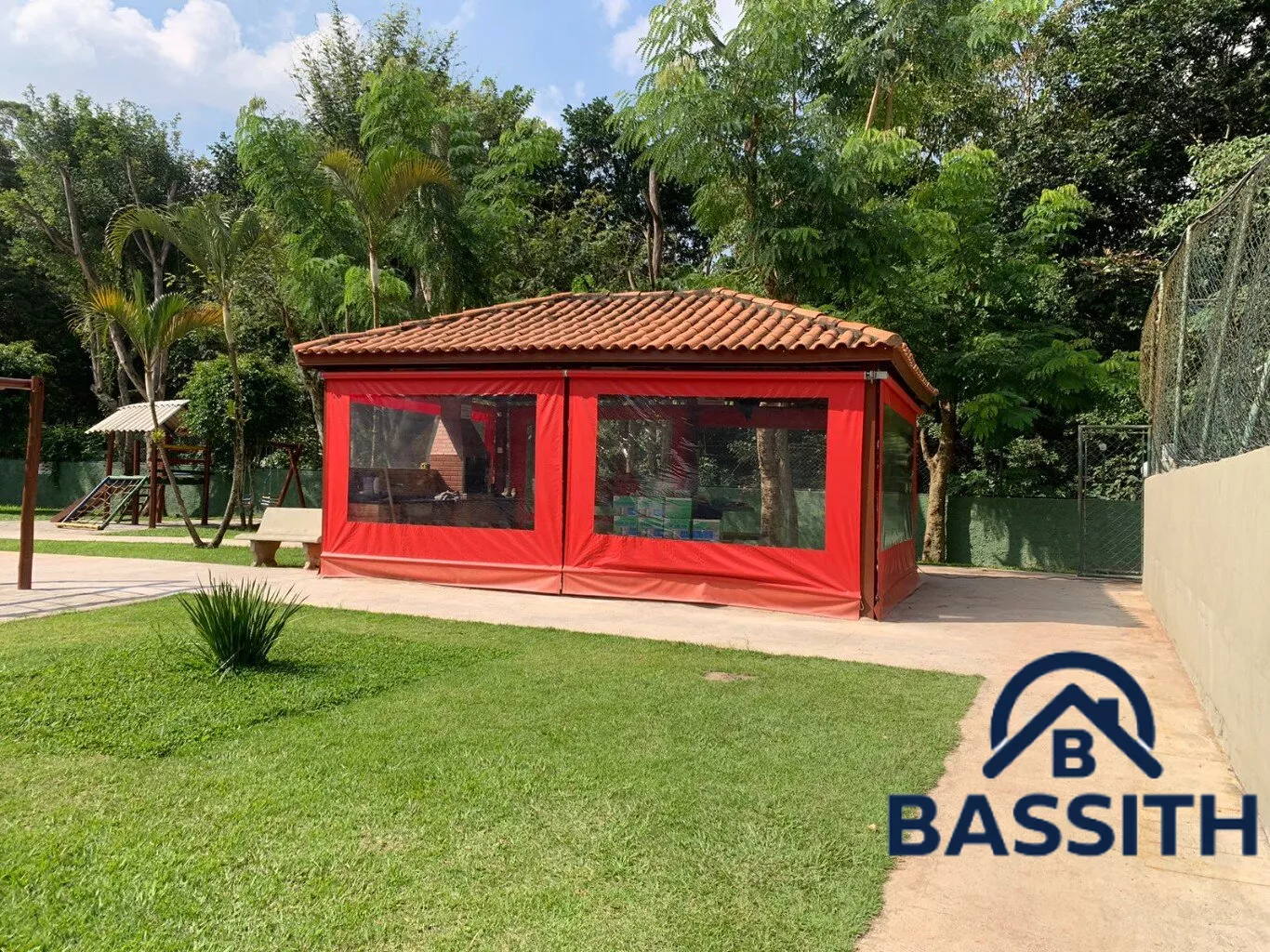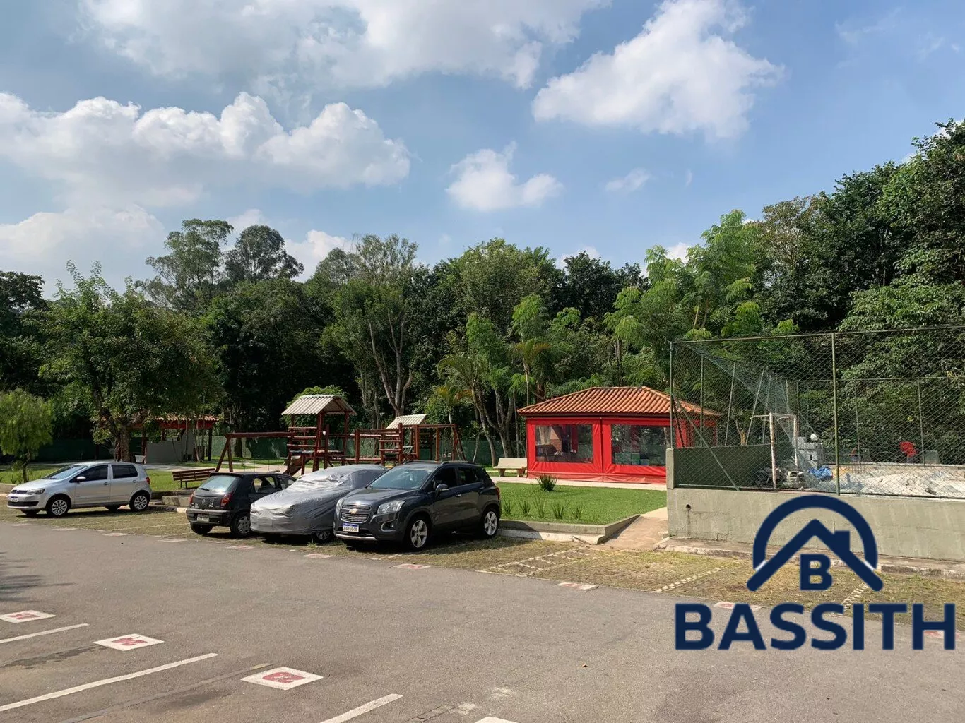 Condomínio integrado a natureza com quadra poliesportiva, churrasqueiras, playground e salão de festa.